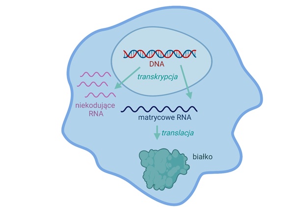 Każdy proces biochemiczny przebiegający w dowolnym organizmie żywym jest bezpośrednio lub pośrednio wynikiem działania procesu zwanego ekspresją genu. W wyniku ekspresji genu, informacja genetyczna zapisana we fragmencie DNA zwanym genem zostaje przepisana na sekwencję ostatecznego produktu, którym jest białko lub RNA (Rys. 1; dla uproszczenia skupmy się jednak tylko na genach kodujących białka). Każde białko, które powstaje w żywym organizmie i pełni w nim określone funkcje, kodowane jest przez konkretny gen znajdujący się w DNA.